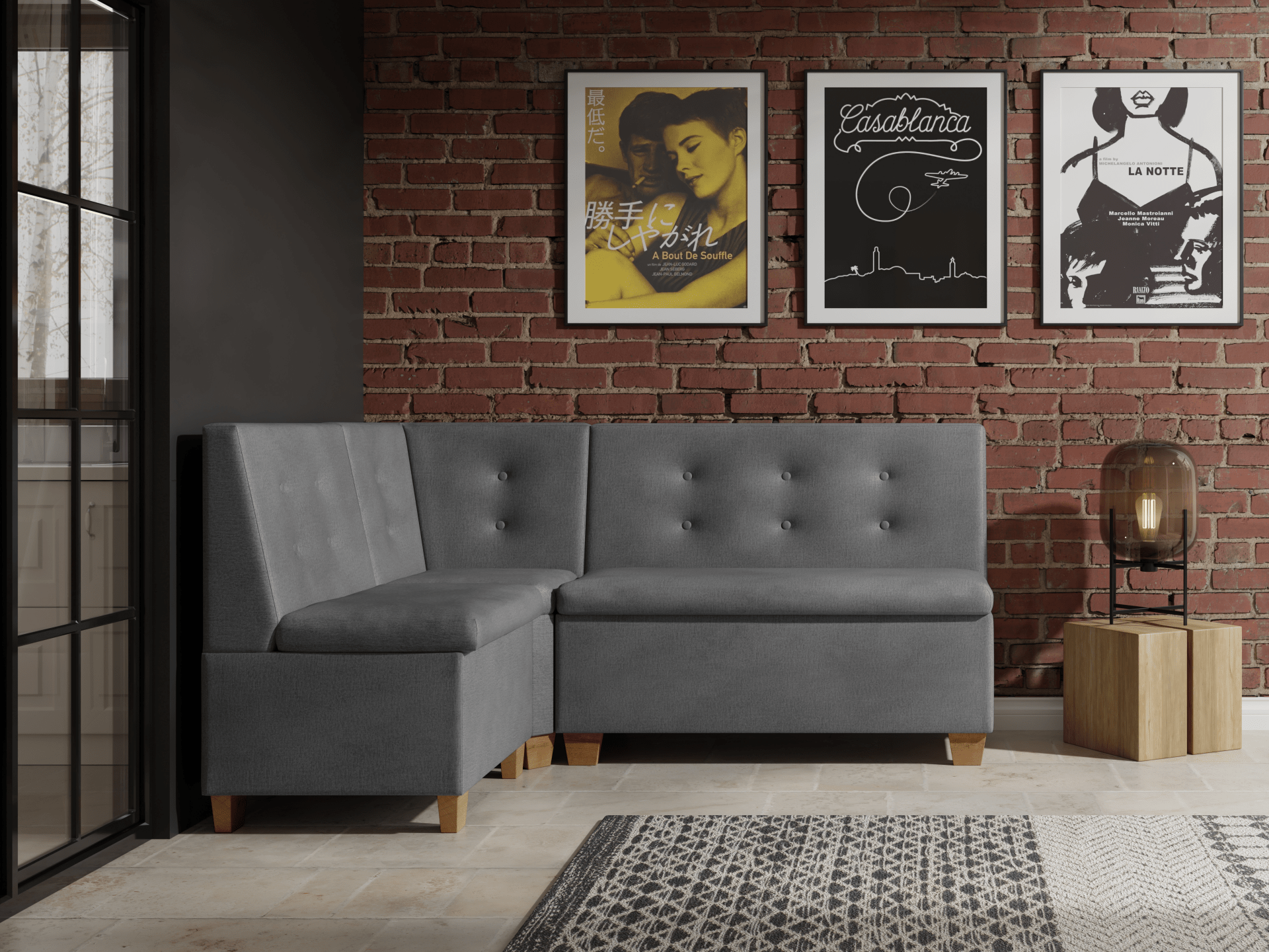 Narożnik kuchenny Barcelona 140×200 ze schowkami szary welur