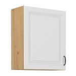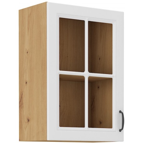 Fronty w kolorze białym nadają kuchni czystości i jasności, a elementy w odcieniu dąb artisan dodają naturalnego, przytulnego charakteru. To połączenie tworzy nowoczesną, ale jednocześnie ciepłą estetykę, która idealnie komponuje się w różnorodnych wnętrzach, od minimalistycznych po bardziej klasyczne aranżacje.