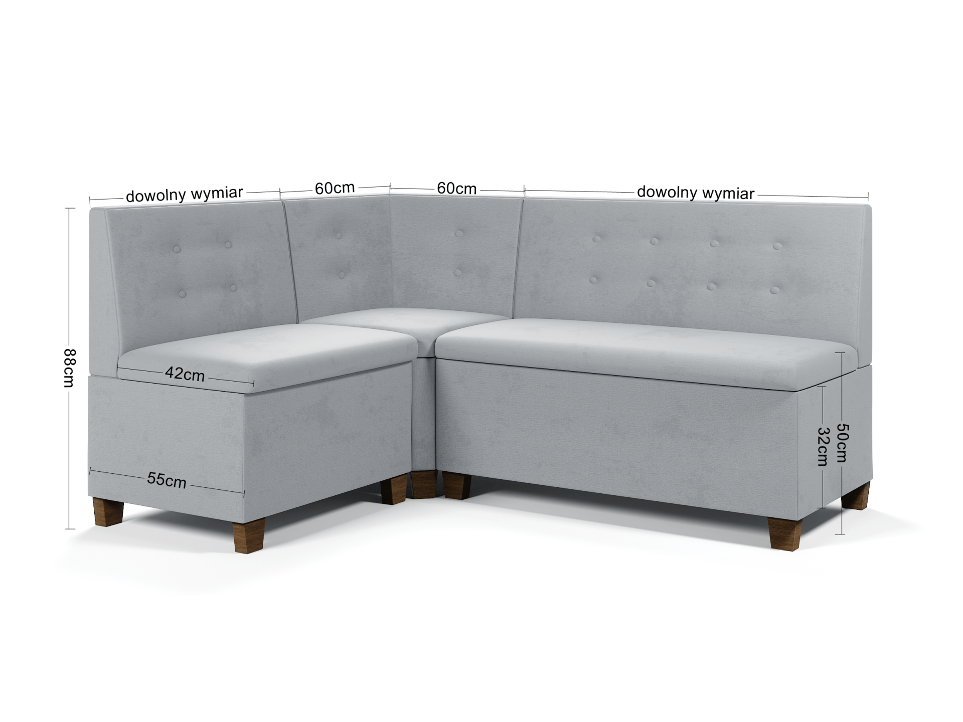 Wymiary narożnika w wersji podstawowej: