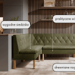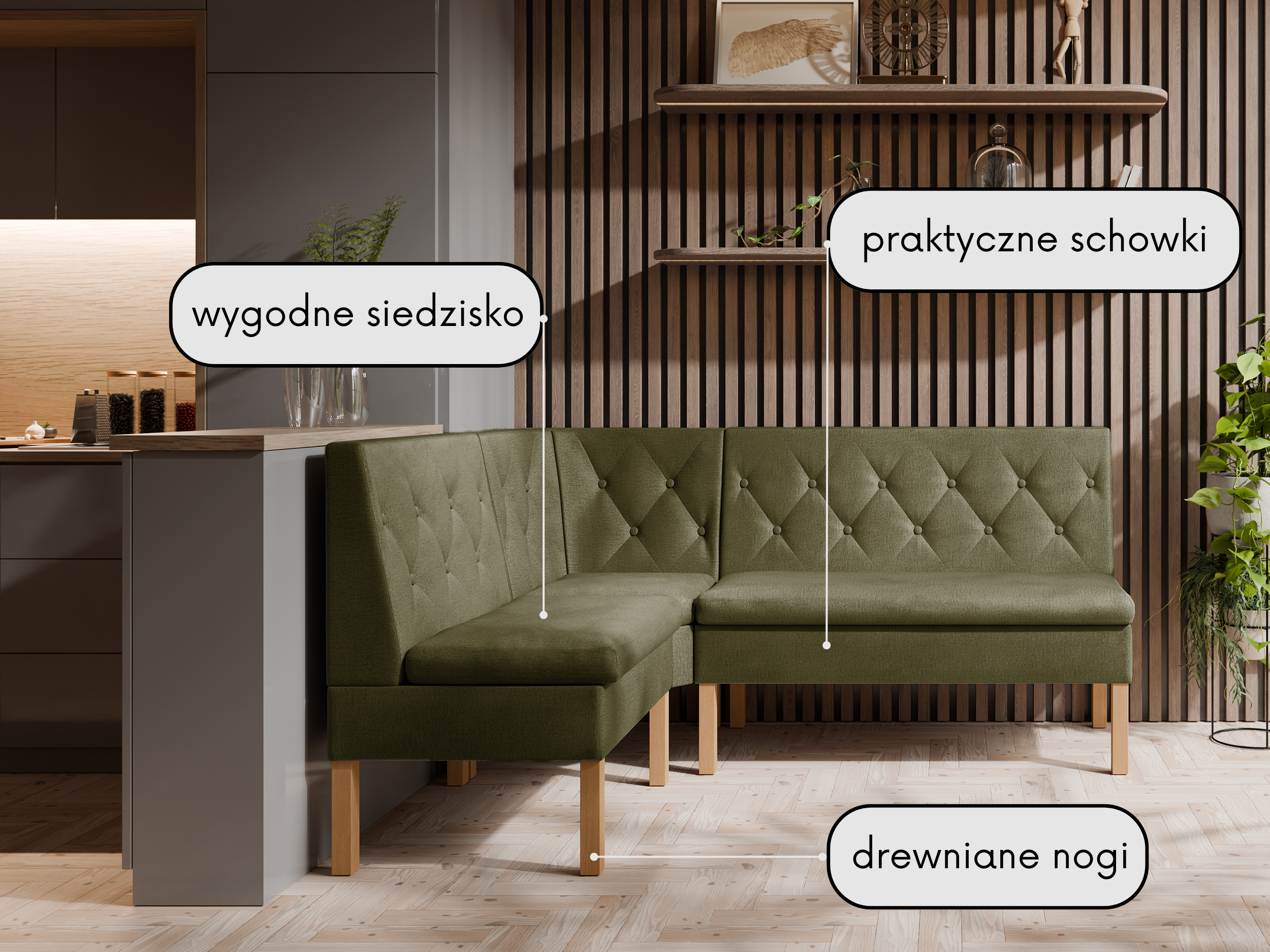 To mebel uniwersalny — możesz złożyć go na prawą lub lewą stronę, co daje pełną swobodę dopasowania do układu kuchni. Dodatkowo narożnik występuje w wielu wariantach rozmiarowych i bogatej palecie tkanin do wyboru, dzięki czemu z łatwością dopasujesz go do swojego wnętrza.