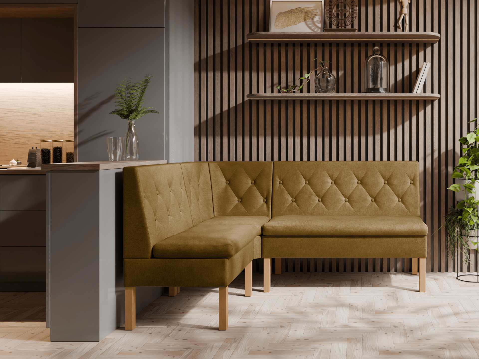 To mebel uniwersalny — możesz złożyć go na prawą lub lewą stronę, co daje pełną swobodę dopasowania do układu kuchni. Dodatkowo narożnik występuje w wielu wariantach rozmiarowych i bogatej palecie tkanin do wyboru, dzięki czemu z łatwością dopasujesz go do swojego wnętrza.