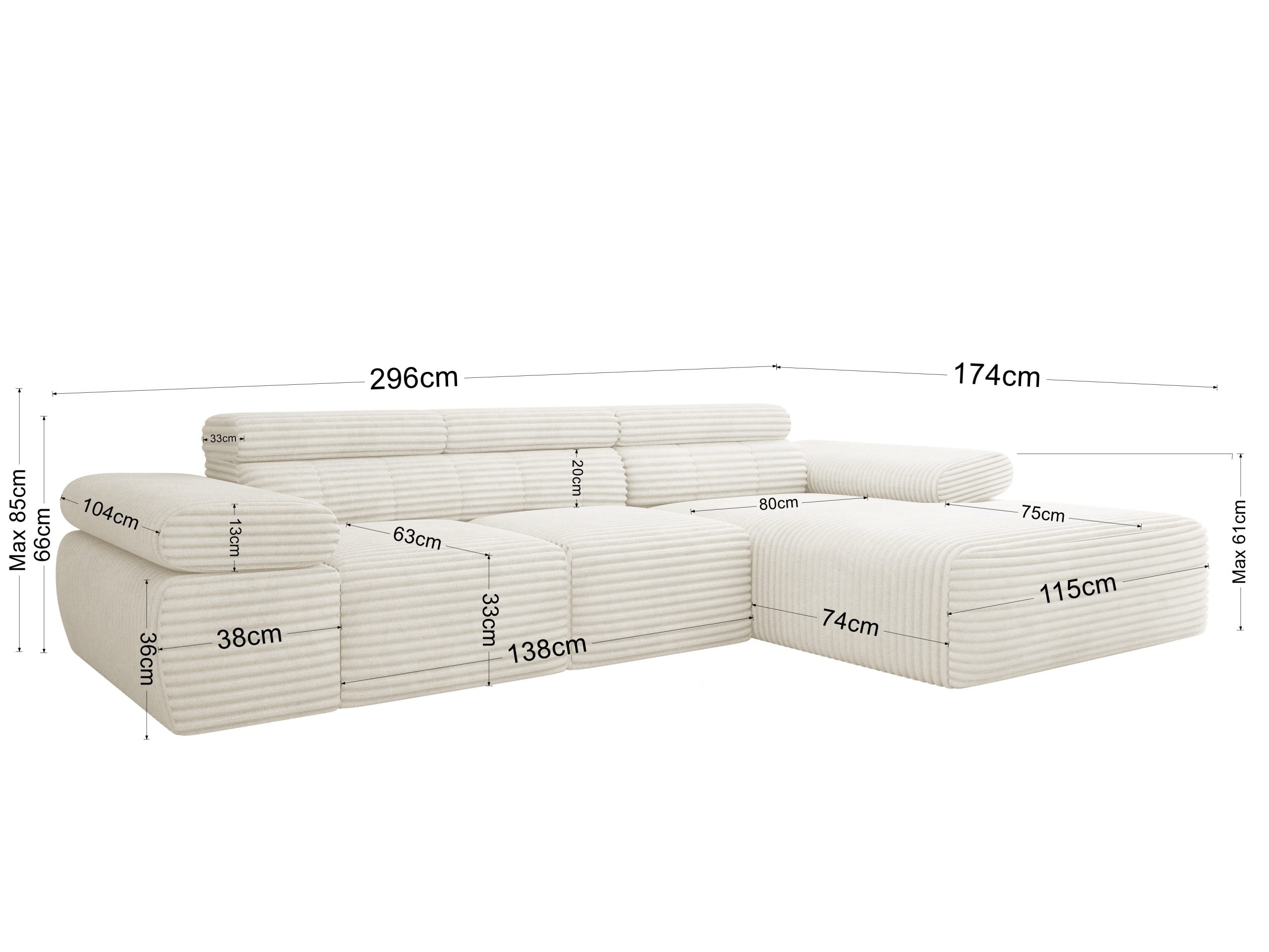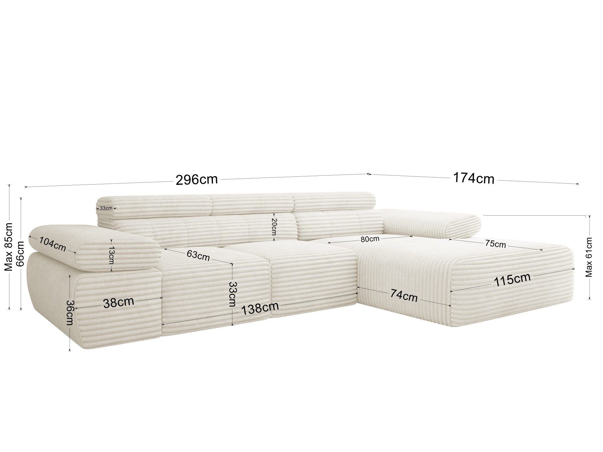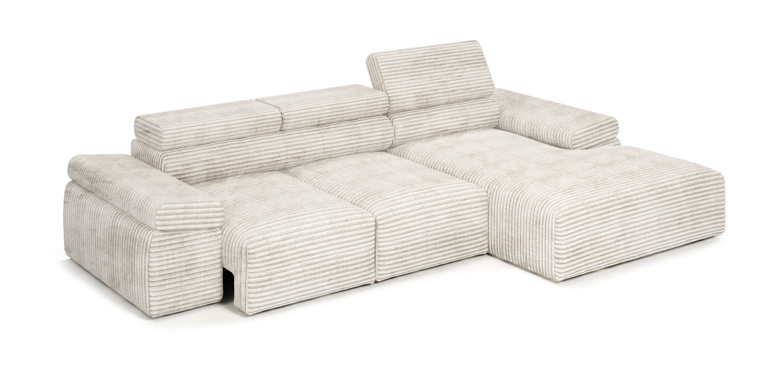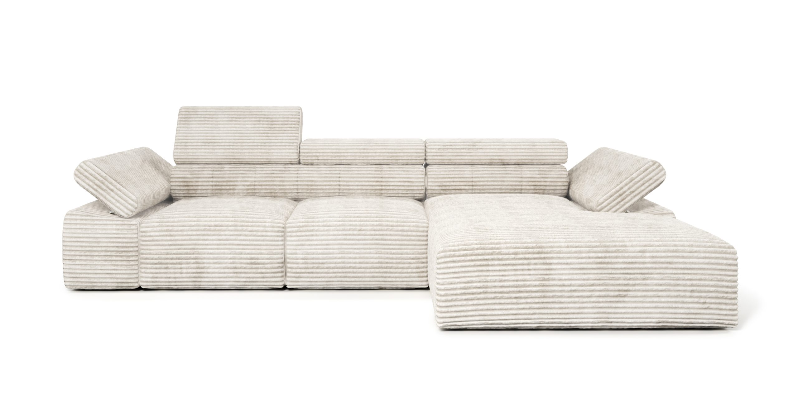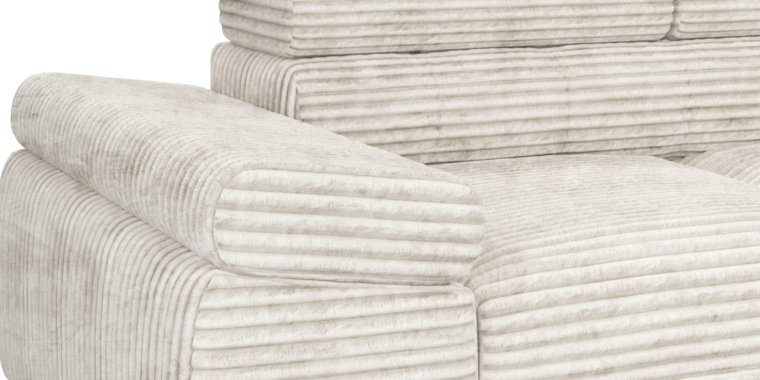 Za codzienny komfort odpowiadają regulowane zagłówki. Pozwalają one idealnie dopasować wysokość oparcia do ulubionej pozycji podczas czytania książki lub oglądania filmu. Siedzisko wypełnione sprężynami falistymi i pianką gwarantuje zaś wygodę i odporność na odkształcenia. Co ważne, mebel oferuje funkcję spania z elektrycznie wysuwanym siedziskiem. W ten sposób błyskawicznie tworzy się wygodne miejsce na popołudniową drzemkę lub nocleg dla gości.