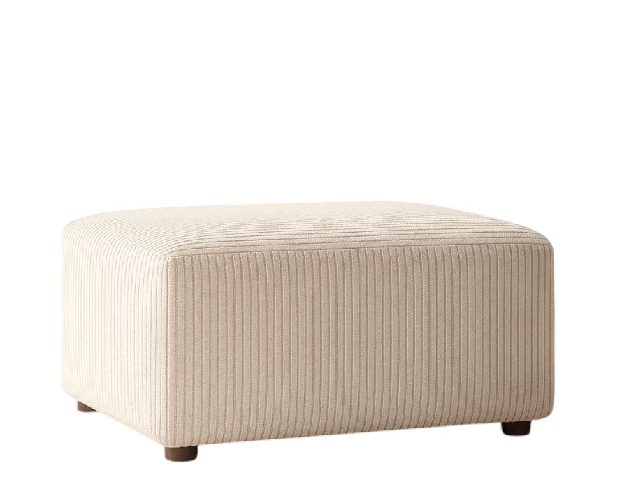 Pufa Vela to elegancki i funkcjonalny dodatek, który idealnie komponuje się z kanapą Vela. Wykonana w modnym, grubym sztruksie Tilia, zachwyca miękką, przyjemną w dotyku strukturą oraz wyjątkowym wyglądem. Dzięki niskiemu osadzeniu na dyskretnych nóżkach o wysokości 3,5 cm prezentuje się nowocześnie i stabilnie.