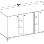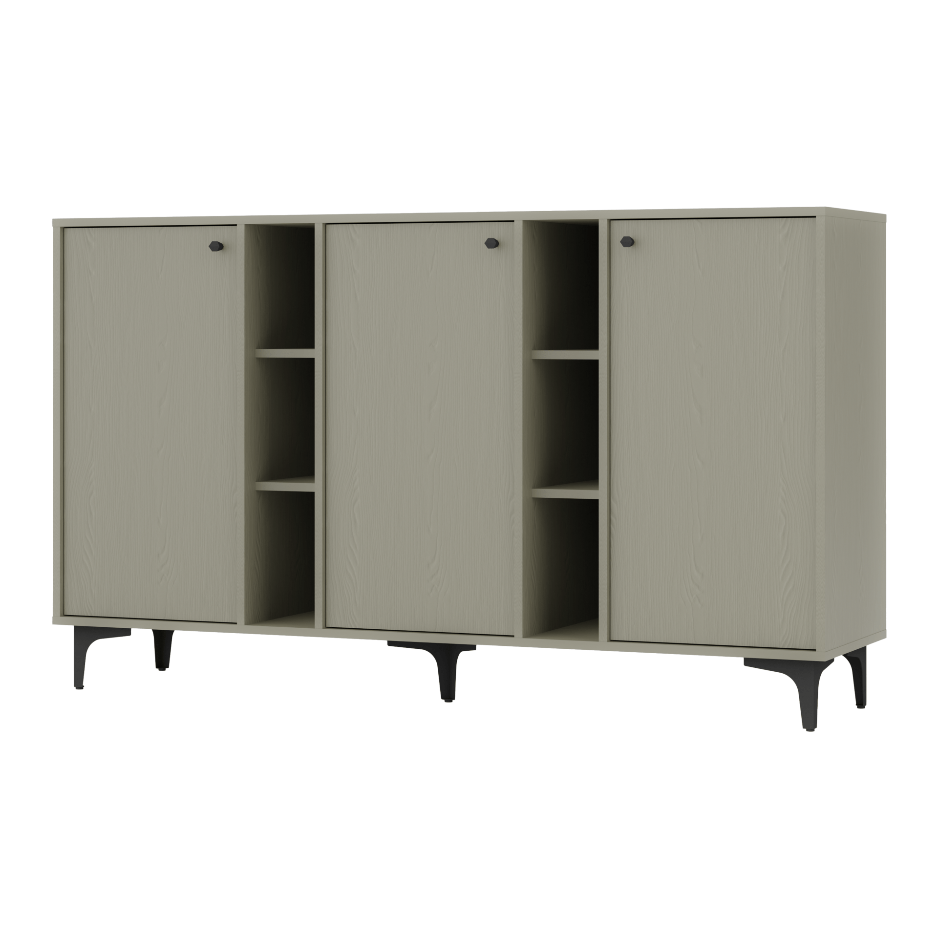 Komoda Tokyo posiada trzy pojemne szafki, które zapewniają dużą przestrzeń do przechowywania, a także otwarte półki, doskonałe do eksponowania ulubionych dekoracji, książek czy roślin. Jej przemyślany design łączy funkcjonalność z estetyką, oferując miejsce na codzienne drobiazgi oraz stylowe akcenty.