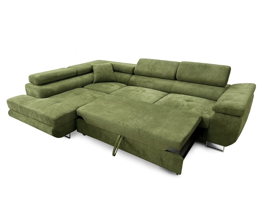 Narożnik Avesta jest także przygotowany na wizytę gości. Rozkładanie za pomocą automatu Delfin jest szybkie i nie wymaga użycia siły. W kilka chwil mebel zmienia się w komfortowe miejsce do spania. Duży pojemnik na pościel pomaga z kolei utrzymać porządek w salonie. Z kolei szenilowa tkanina Aragon poradzi sobie z wyzwaniami codziennego życia. Utrudnia wchłanianie rozlanych płynów i jest przyjazna zwierzętom, co pozwala cieszyć się wspólnymi chwilami bez obaw.
