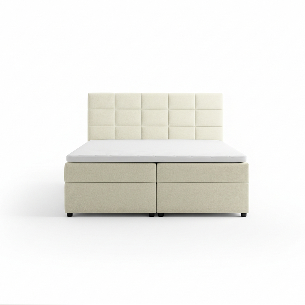Łóżko kontynentalne Eris 160×200 – podwójne łóżko tapicerowane z pojemnikiem i topperem