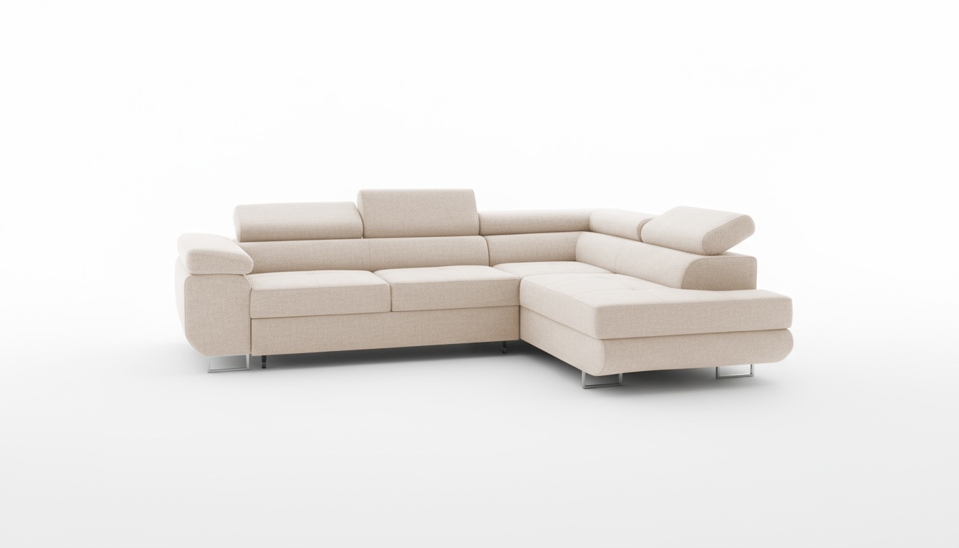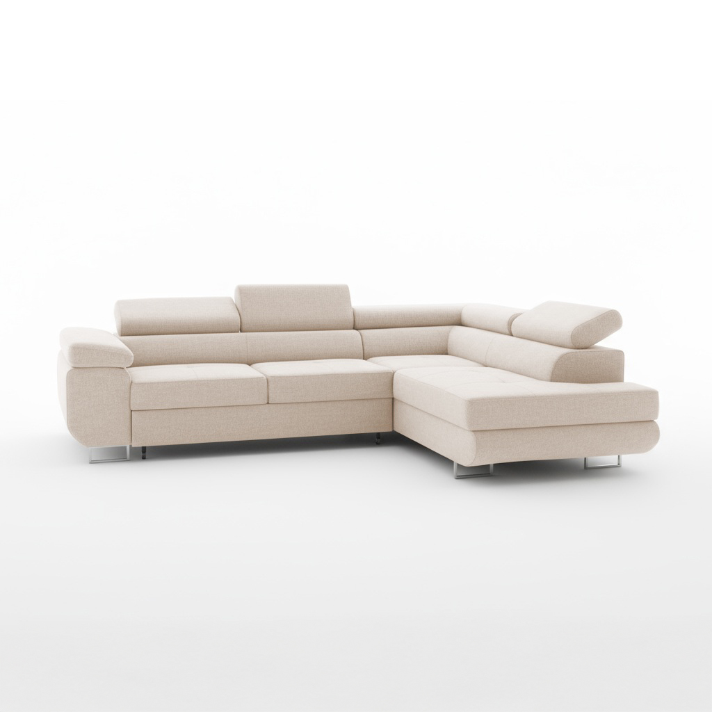 Mebel zaskakuje także swoją funkcjonalnością. W razie potrzeby można go łatwo zamienić w wygodne łóżko dla gości. Rozkładanie za pomocą automatu Delfin jest szybkie i nie wymaga wysiłku. Z kolei pojemny pojemnik na pościel ukryty w otomanie pomaga utrzymać porządek w salonie. Tkanina Storm jest wyjątkowo praktyczna. Jej hydrofobowe właściwości utrudniają wchłanianie rozlanych płynów. Jest również przyjazna zwierzętom i łatwa w czyszczeniu, więc beżowe obicie pozostaje piękne na długo.