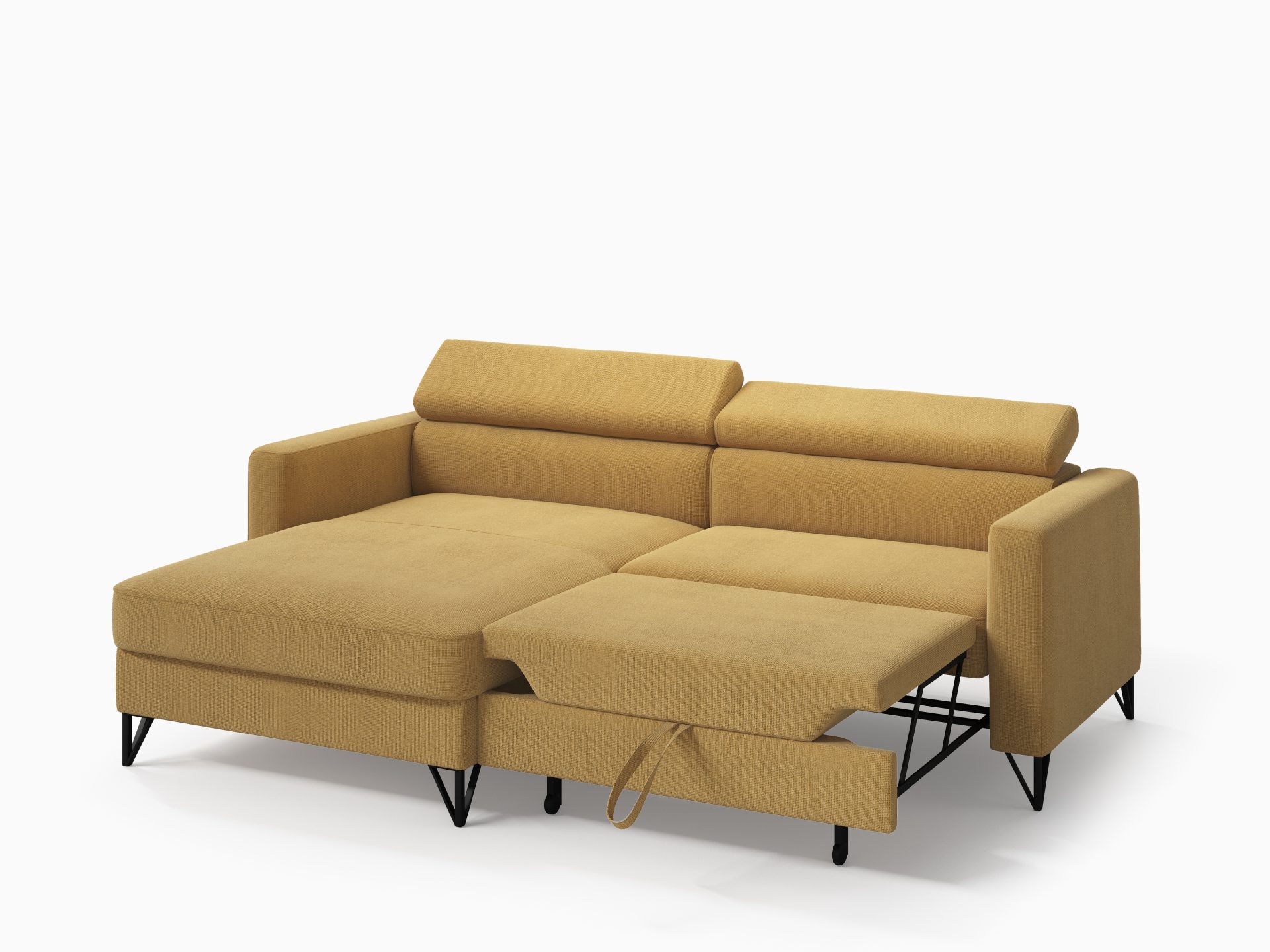 Narożnik Otino jest przygotowany na każdą okazję. Posiada intuicyjną funkcję spania, którą aktywuje się za pomocą automatu Delfin. W ten sposób szybko powstaje komfortowe miejsce do spania dla gości. Pojemny schowek w otomanie z łatwością pomieści dodatkową pościel lub koce, pomagając utrzymać porządek. Wytrzymała tkanina o strukturze plecionki utrudnia wchłanianie rozlanych płynów. Jest także przyjazna zwierzętom, co ułatwia codzienne dbanie o czystość.